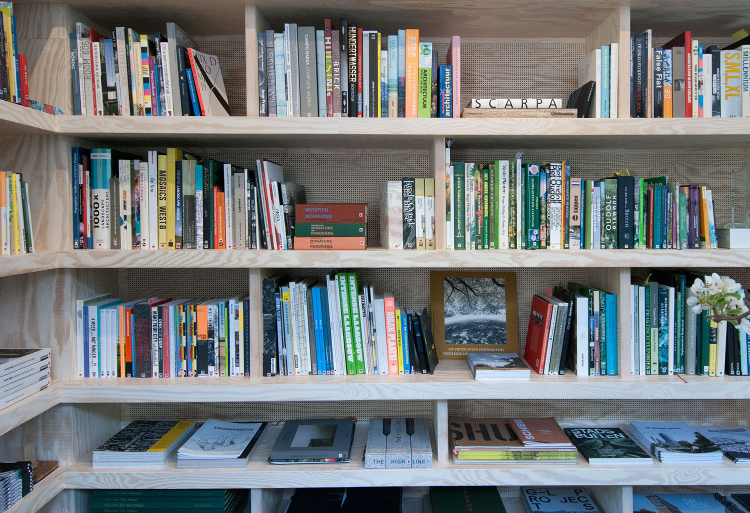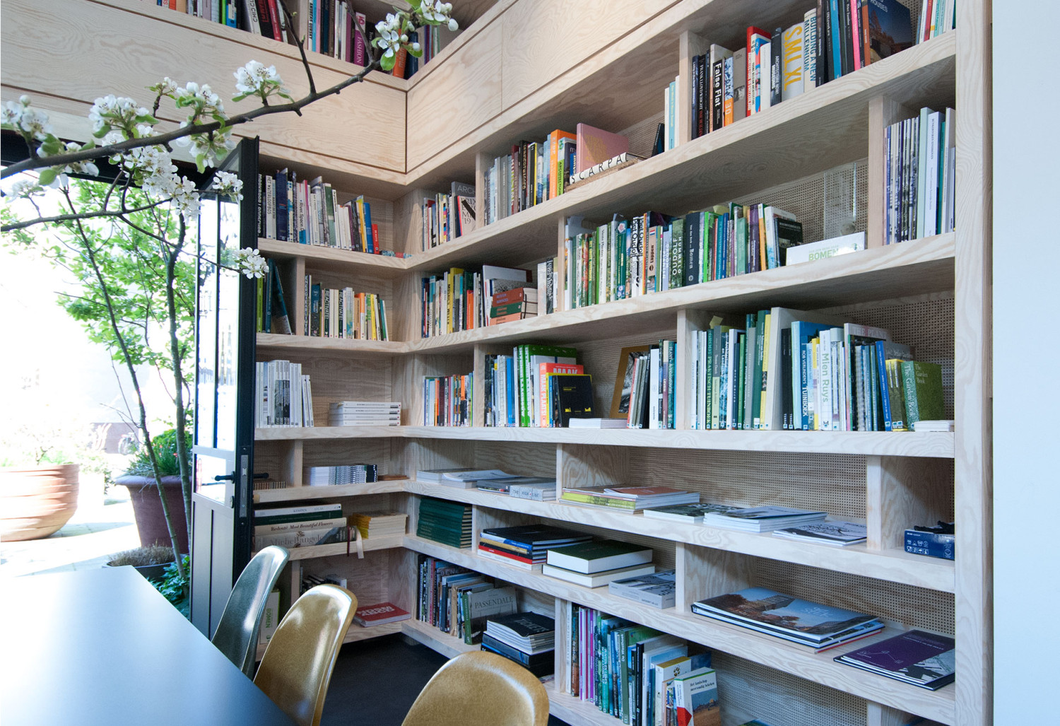 In samenwerking met Puurplus Ontwerpers. Deze boekenkast, waar de horizontale lijnen het karakter bepalen, is op maat gemaakt van een Pools Grenen Multiplex. De kast is afgewerkt met een white-wash en matte lak. Deze kast is opgebouwd uit modules welke op locatie in elkaar zijn geschakeld. De meterkast en het rolluik voor de gevelopening zijn weggewerkt achter het meubelwerk.