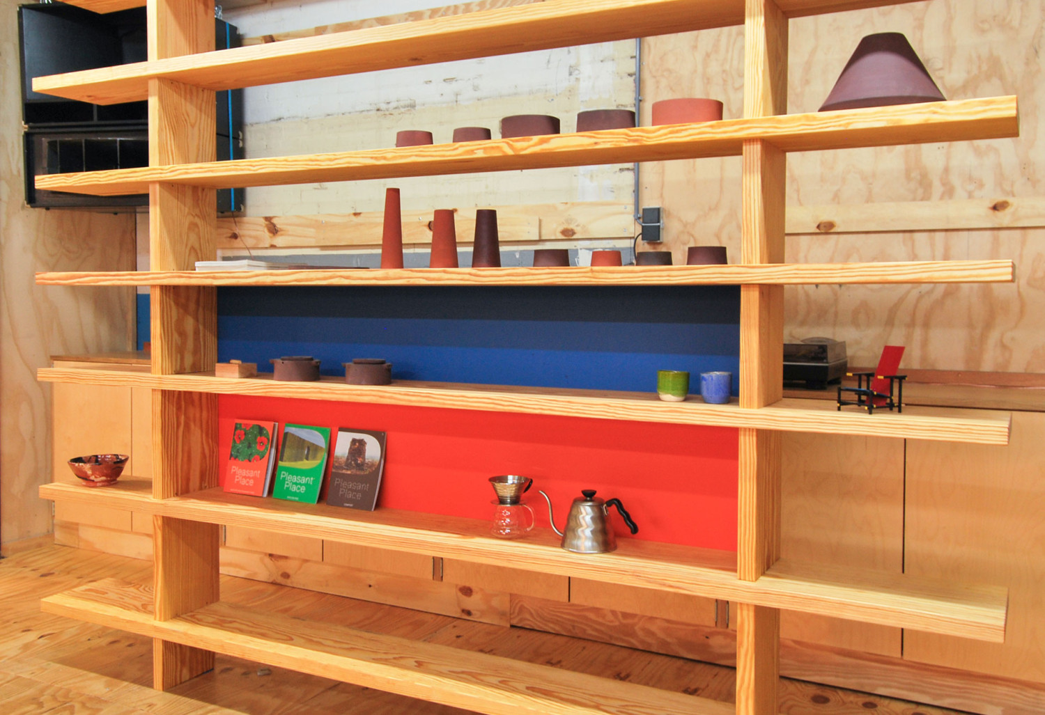 Samen met Zip Stolk hebben we deze open kast gemaakt van Yellow Pine.