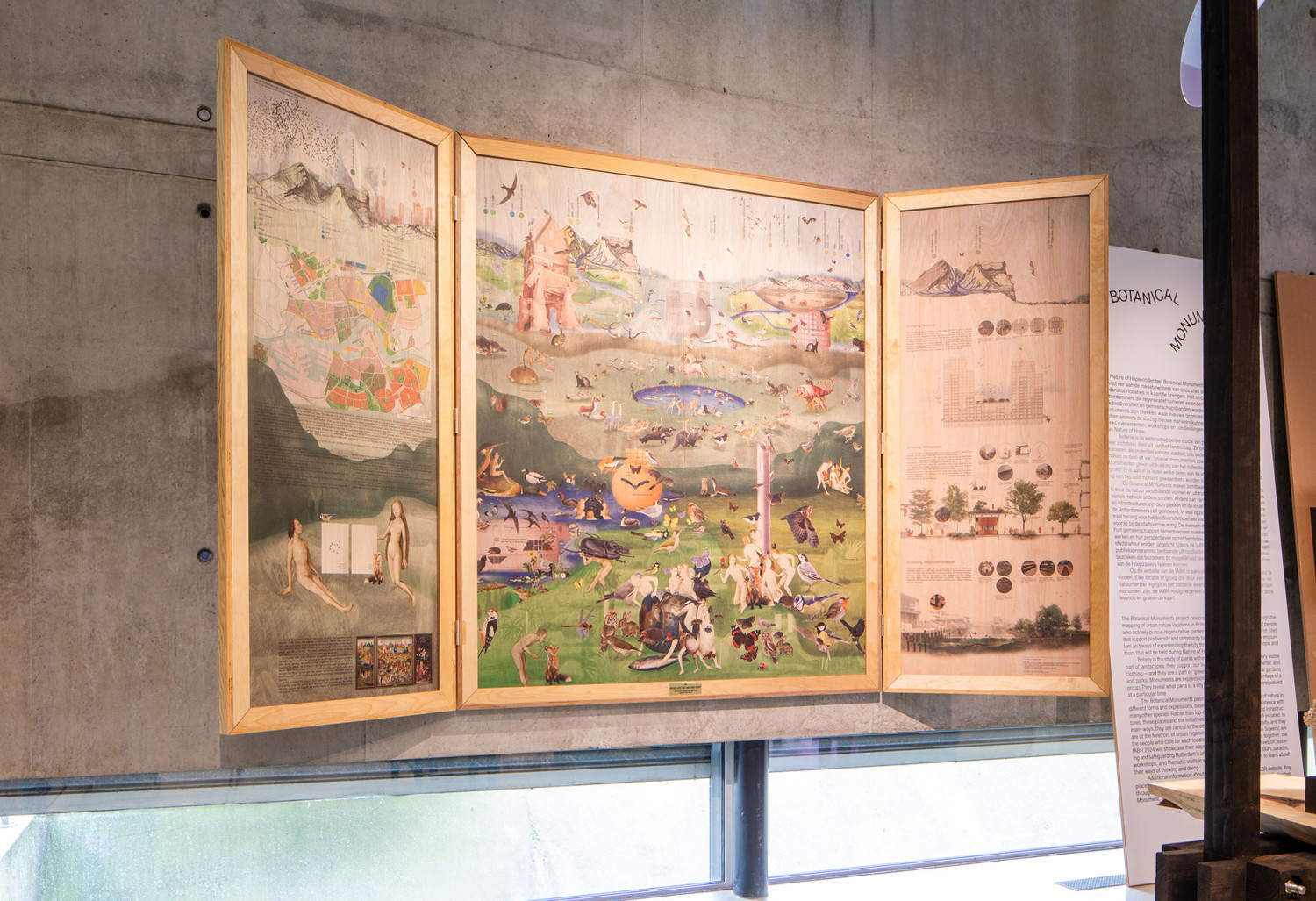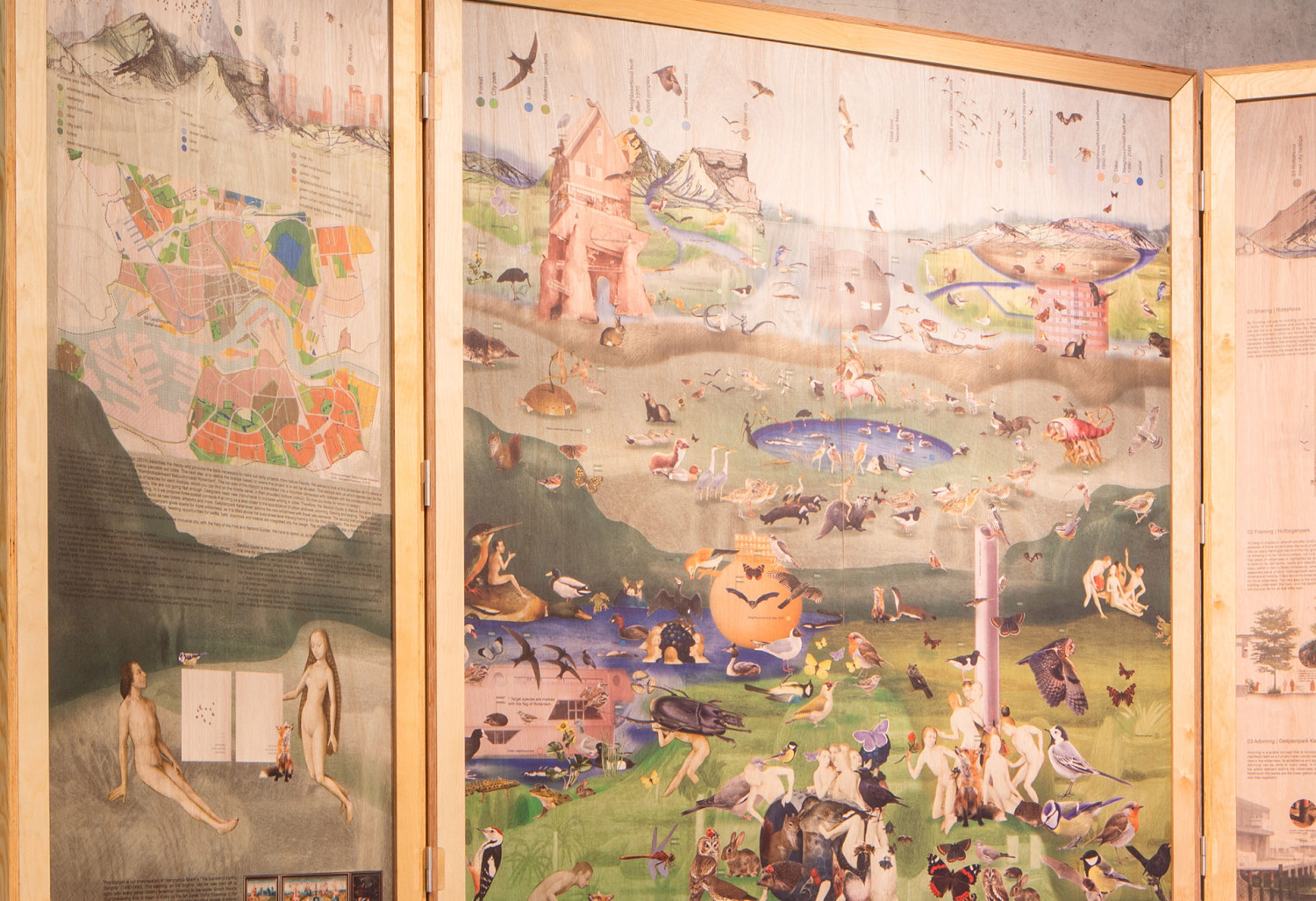 Samen met Zip Stolk hebben we een drieluik gemaakt in opdracht voor DS Landsschapsarchitecten voor de IABR tentoonstelling. De frames zijn vrijwel volledig vervaardigd uit restmaterialen. Het frame kan volledig uit elkaar gehaald worden en het printwerk uitneembaar.